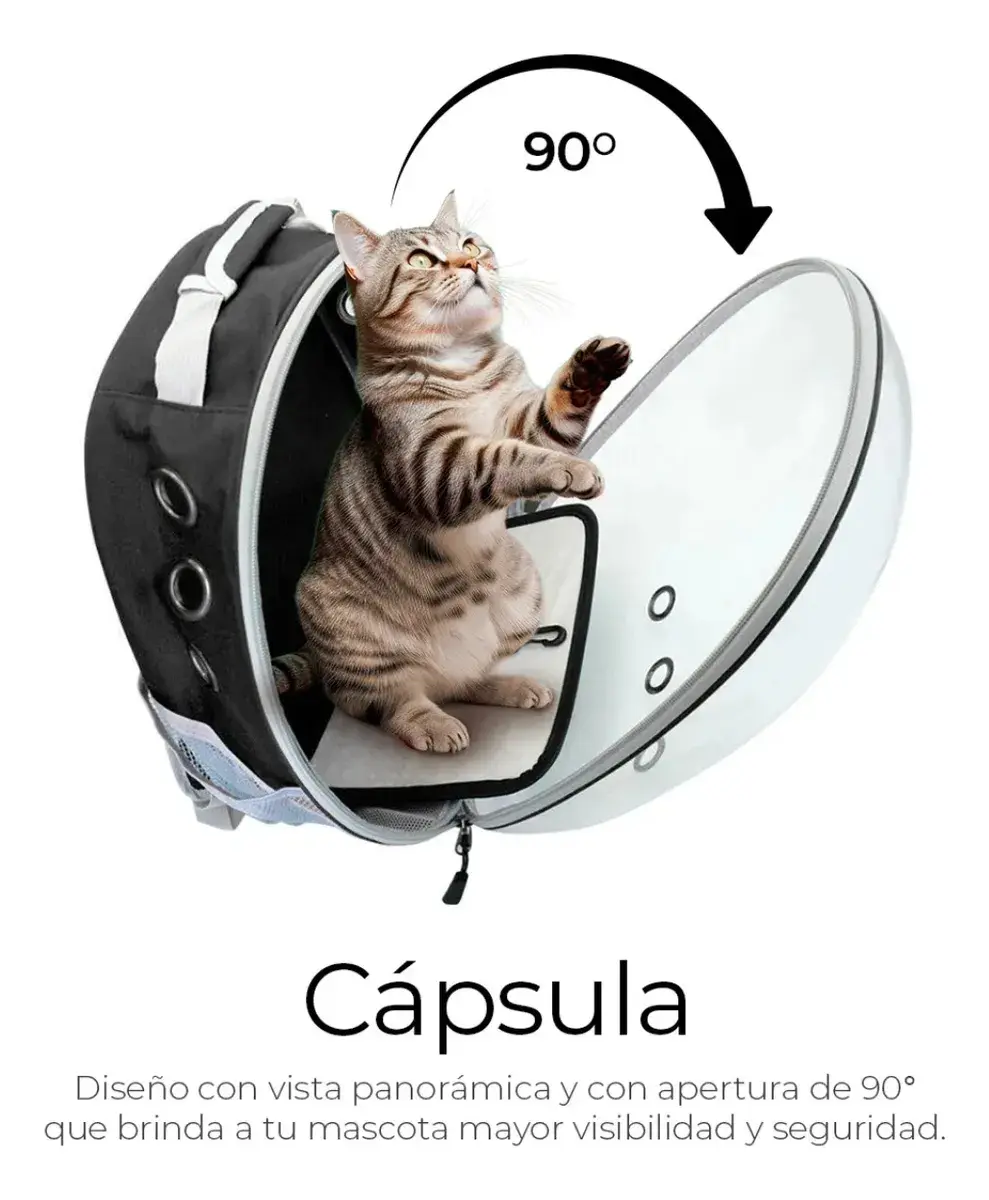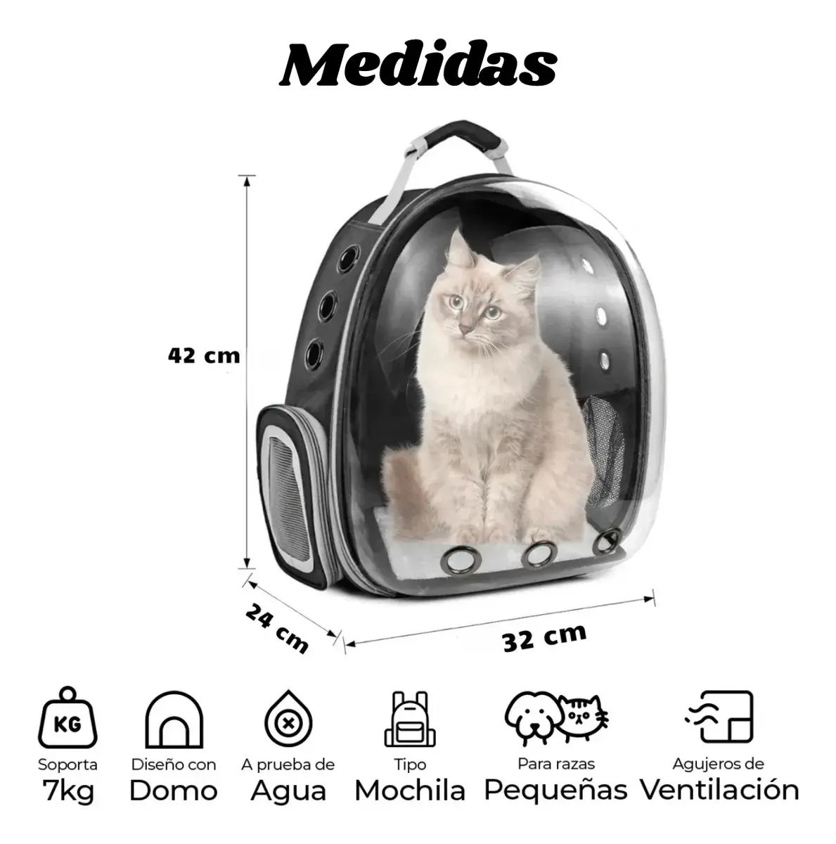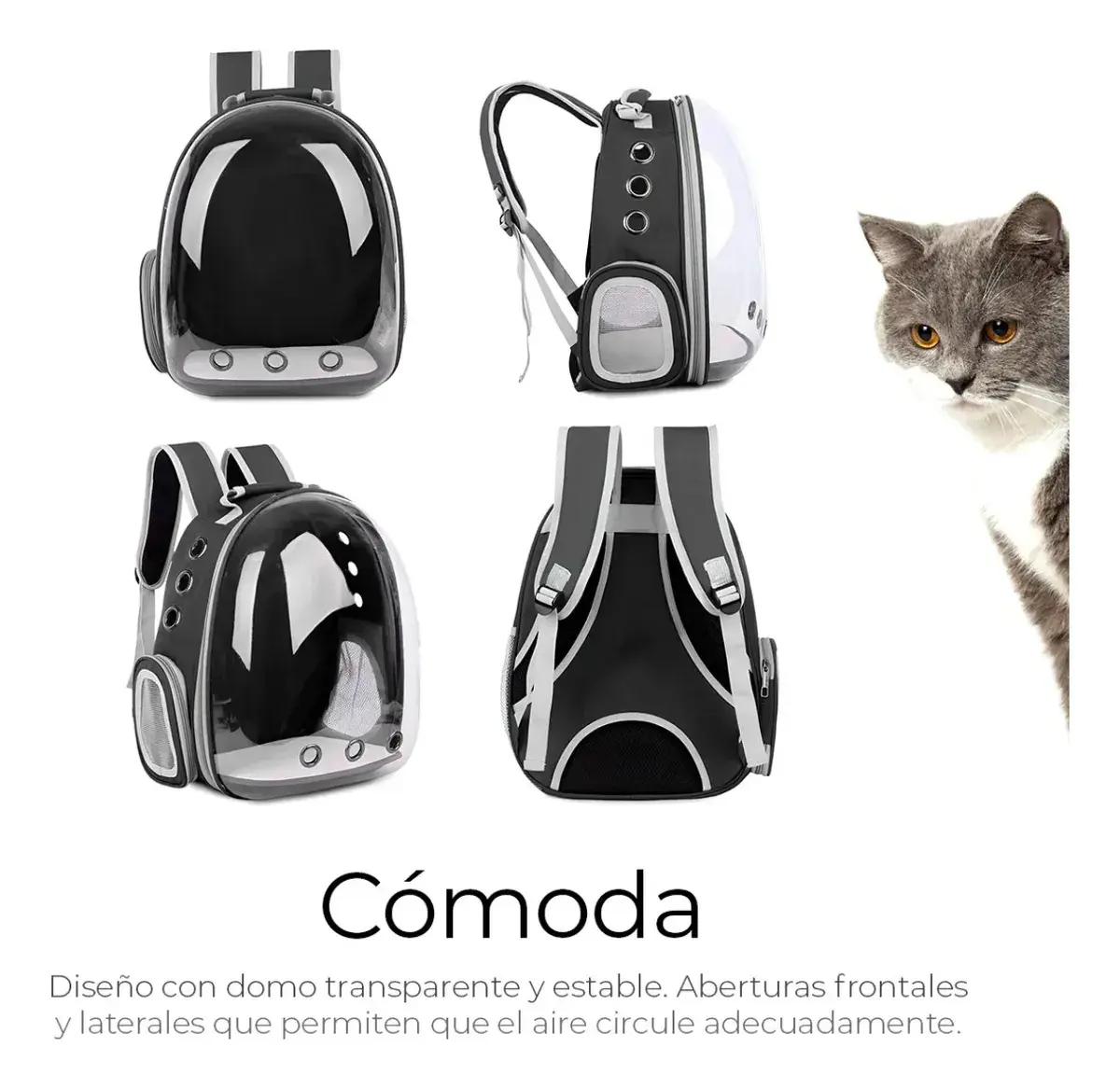 Cuenta con múltiples orificios de aire y laterales de malla que permiten una ventilación óptima, asegurando la comodidad de tu mascota durante todo el trayecto.