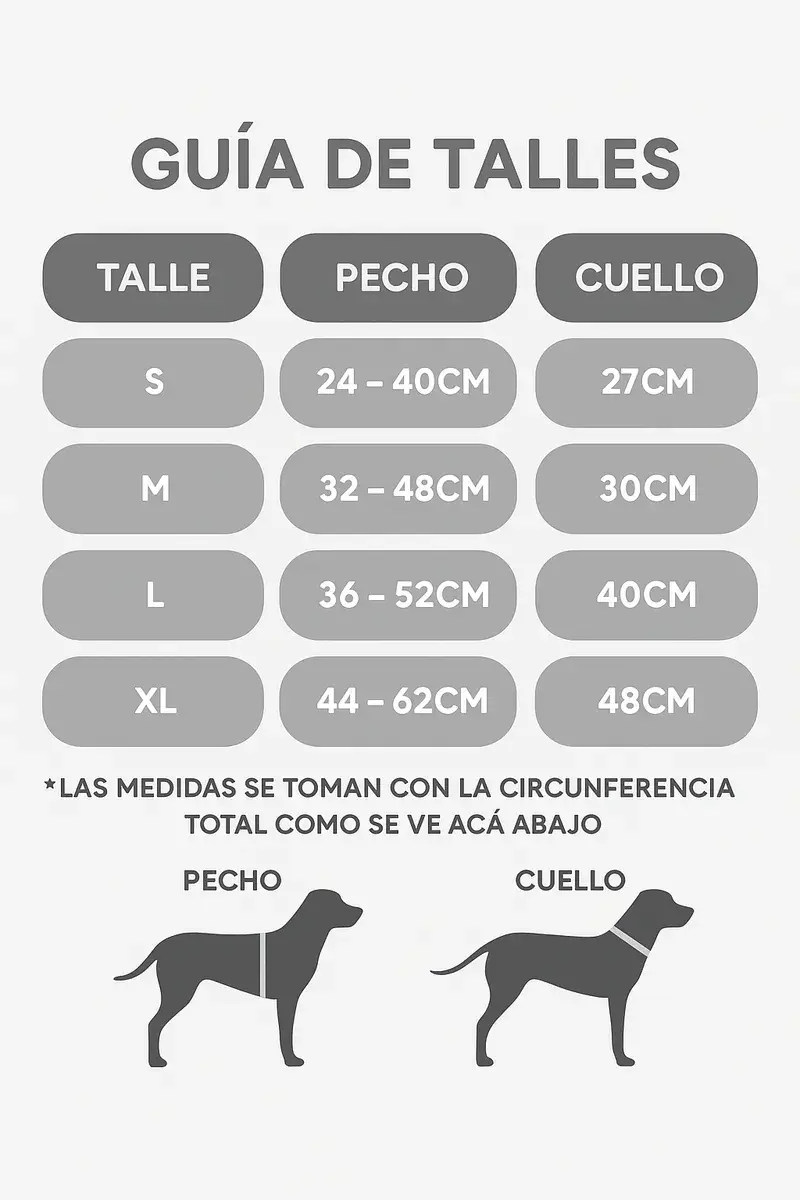 *Para saber el talle que necesita, debe medir la circunferencia del pecho y cuello*