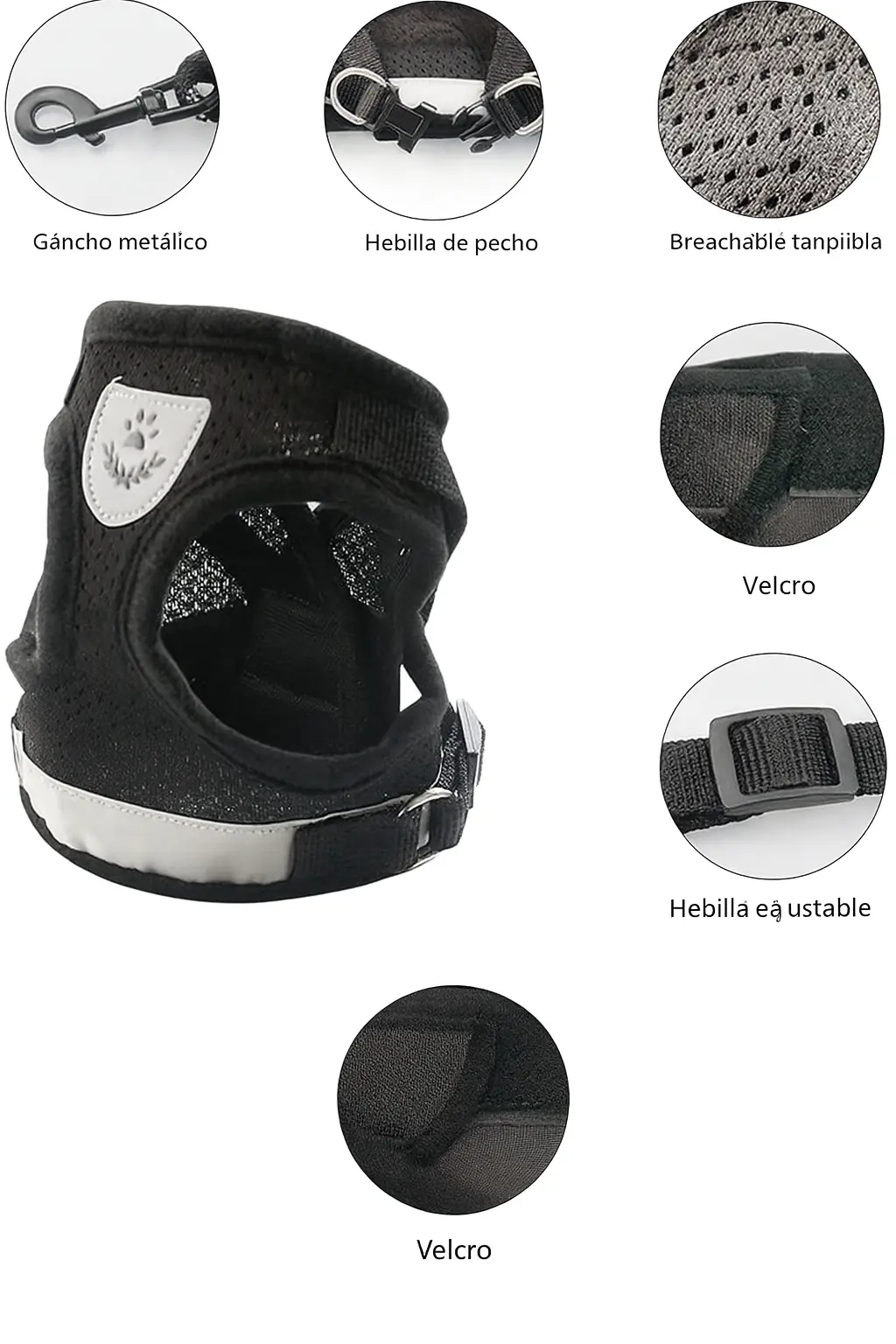 La suavidad del material acolchado protege la piel de tu mascota, minimizando la fricción y garantizando un ajuste cómodo. La combinación de diseño ergonómico y funcionalidad lo convierte en un complemento perfecto para disfrutar de largos paseos al aire libre.